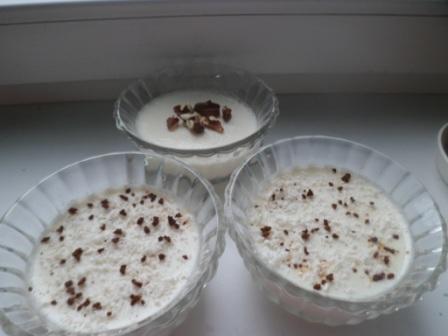 Снять с огня, немного остудить. Влить молоко с растворенным желатином. Перемешать до однородной массы, прибавить ванилин. Разлить в формочки или креманки. Поставить в холодильник на 2 часа для застывания. Подавать можно в этих же формочках/ креманках или выложить, опрокинув на тарелочки. Украсить по вкусу. ПРИЯТНОГО АППЕТИТА!