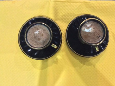Взбить миксером 2-3 яйца с сахаром + по 1 ст. л какао и растворимого кофе . Опять взбить миксером. Вскипятить 1л. молока. И влить молоко в смесь. Разлить по маленьким кофейным чашечкам.