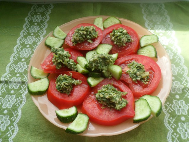 ЗАКУСКА ИЗ СВЕЖИХ ПОМИДОРОВ И ОГУРЦОВ
