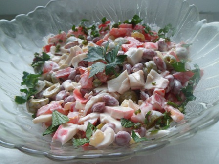 САЛАТ ИЗ КРАСНОЙ ФАСОЛИ И КРАБОВЫХ ПАЛОЧЕК