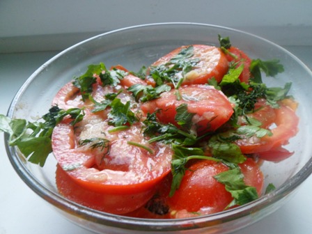 БЫСТРАЯ ЗАКУСКА ИЗ ПОМИДОРОВ В ЛЁГКОМ МАРИНАДЕ