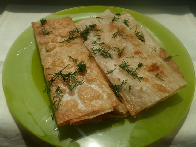 добавить измельченный укроп. Завернуть лаваш как блинчик и обжарить на